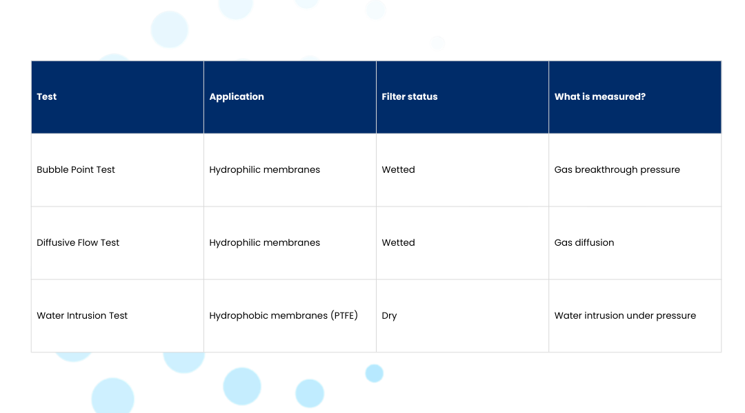 The choice of the integrity test therefore fully depends on the membrane material.